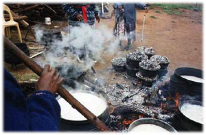 Lagar mat och bakar för många på landsbygden i Sydafrika. Bilderna är tacksamt publicerade med tillstånd av Nomsa Maliwa, Qumbo, Transkei, Sydfrika
